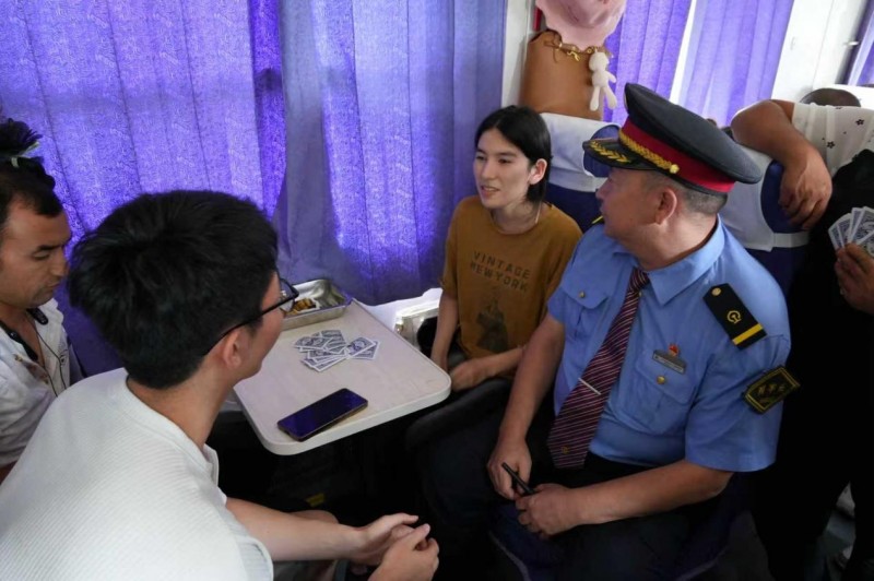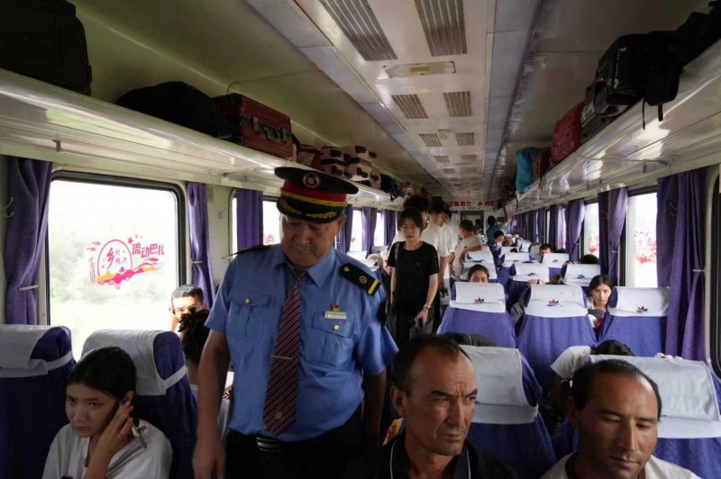 实践团成员们深入列车车厢,与列车工作人员和乘客进行了深入交流。列车长是一位有着多年工作经验的维吾尔族大叔,他向实践团成员们讲述了 “和田玉龙号” 的发展历程。他说:“‘和田玉龙号’自2012年开行以来,见证了南疆地区的巨大变化。最初的时候,列车的设施比较简陋,每天的客流量也不足百人。但是随着国家对南疆地区发展的重视和投入,铁路部门不断对列车进行升级改造,改善乘车环境,增加列车班次。现在,列车上不仅有了空调、热水,还设置了母婴室、残疾人专用座位等,每天的客流量已经超过了2000人次,成为了南疆地区名副其实的民生动脉。”