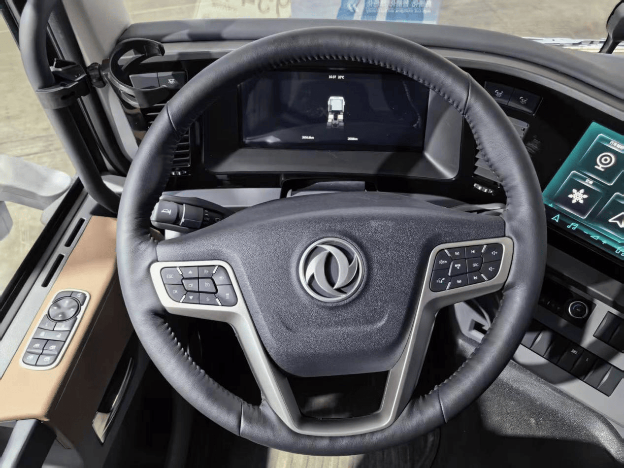 进入驾驶室,双液晶仪表设计瞬间提升科技感,中控大屏集成导航、娱乐、车辆状态监控等功能,触控流畅,操作便捷。握力检测方向盘设计可通过驾驶员的握力变化,辅助判断驾驶状态,进一步补充安全监测维度。