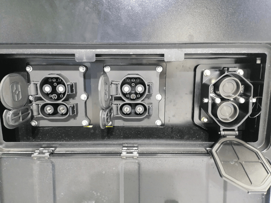 兆瓦超充电池的2个充电插口+1个冷却液插口