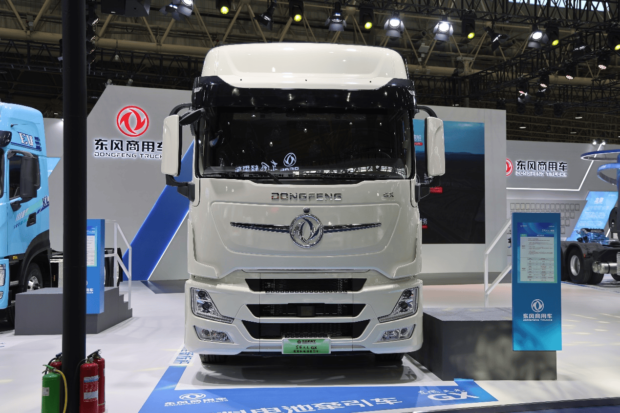东风天龙GX氢燃料电池牵引车采用大功率高效燃料电池系统,功率190kw,逆反应转化效率>48%,可以理解为消耗同样的氢气这个系统的发电量会更大。续航方面,车辆标配4个353L的储氢瓶,搭配99度磷酸铁锂电池,实现加氢20分钟,续航超700km的表现,运营效率媲美柴油车。