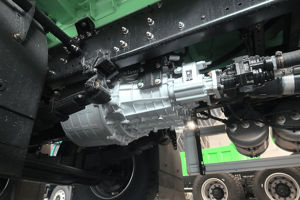 面对矿山运输中陡坡攀爬、重载起步频繁、路况颠簸等复杂工况,东风天锦 KC 纯电自卸车(KT9C)传动系统采用苏州绿控 J4S240 DD 4 挡 AMT 变速箱,与东风德纳 DF485 桥形成黄金匹配,5.57 速比设计兼顾动力性与经济性,换挡逻辑智能流畅,大幅降低驾驶操作强度。同时,纯电动力架构简化了传统燃油车复杂的传动结构,减少易损部件数量,降低后期维护频次与成本,为用户打造全生命周期运营优势,践行了 “一切源于可靠” 的品牌承诺。