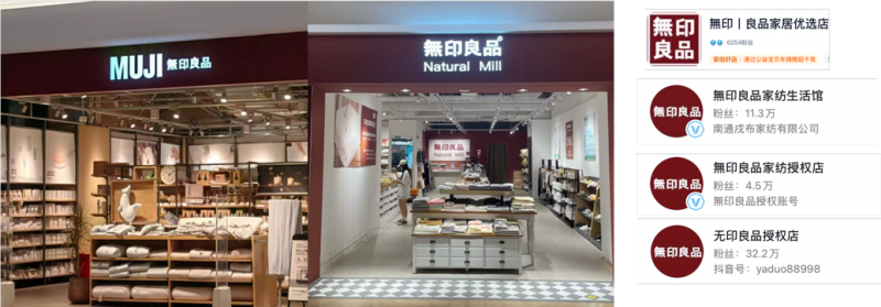 “MUJI无印良品”和“无印良品 Natural Mill”线上下门店在配色风格上颇为相似(图片来自网络)