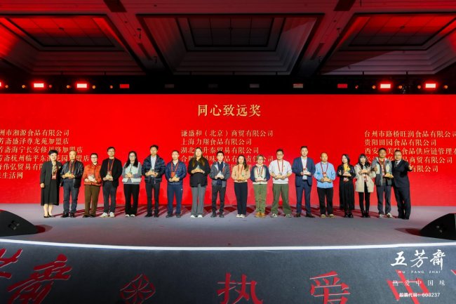 荣耀不只属于前台的开拓者,也属于幕后的同行者。在随后的颁奖仪式上,五芳斋为长期以来携手共进的优秀合作伙伴颁发了荣誉奖项,感谢他们与五芳斋风雨同舟,共同守护每一粒糯米的纯净,共同传递中华节令美食的温度。