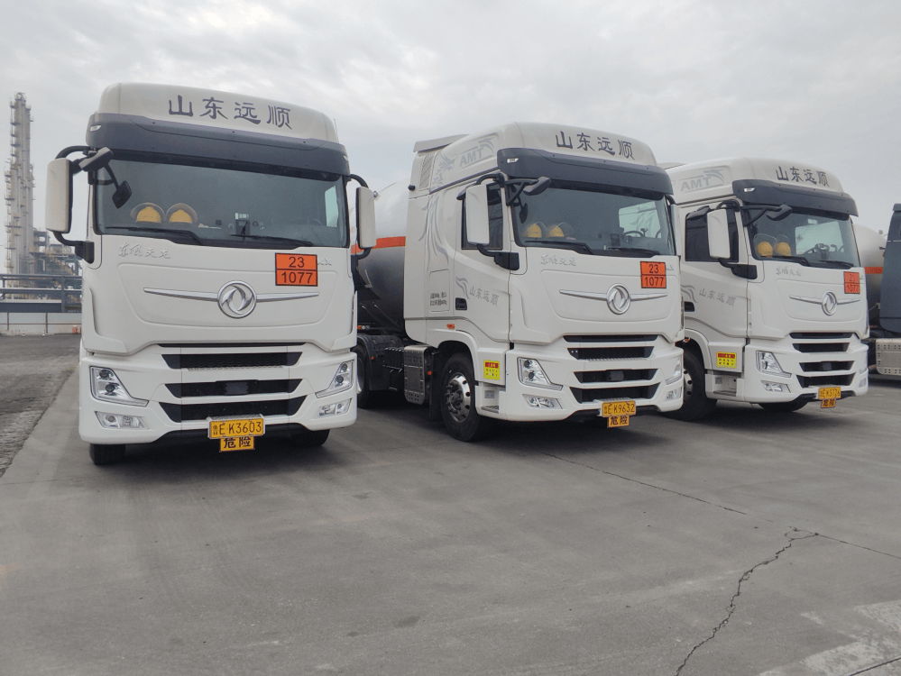 地处山东东营的山东远顺与其他企业不同,运输的并不是当地有名的“黑黄金”,而是以国家主要炼化企业资源运输及民生用气保供为重任。公司自有液化气工厂,因此车队一小部分承接公司的产品运输,一大部分承接客户的业务。除了在山东境内运输之外,山东远顺还开通了国际道路运输线路,与多家500强企业合作,年度运量达到了122万吨。