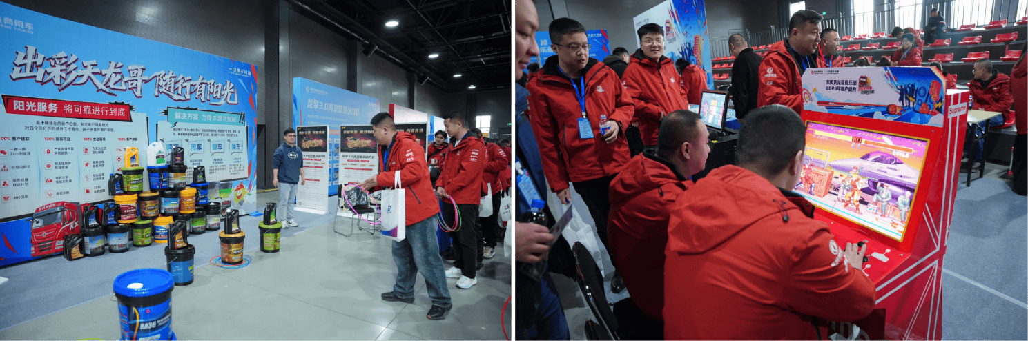 放大看另一边,“天龙哥嘉年华”互动区同样人气高涨。各类趣味互动,让卡友及家人们在轻松游戏中拉近距离,深度感受东风“人、车、生活”和谐共融的“家”式温暖。